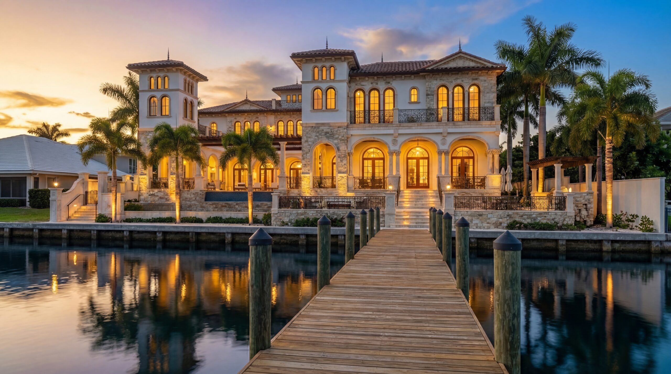 Nestled along the tranquil waters of Miami Beach’s La Gorce neighborhood, this estate draws inspiration from Italian Renaissance architecture, featuring Mediterranean influences such as grand arches and classical columns. The design embodies timeless elegance and refined craftsmanship, creating a stately yet inviting presence.